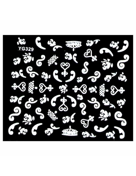 YG-329 | Αυτοκόλλητα νυχιών, διάφορα διακοσμητικά σχέδια σε λευκό | Nail stickers