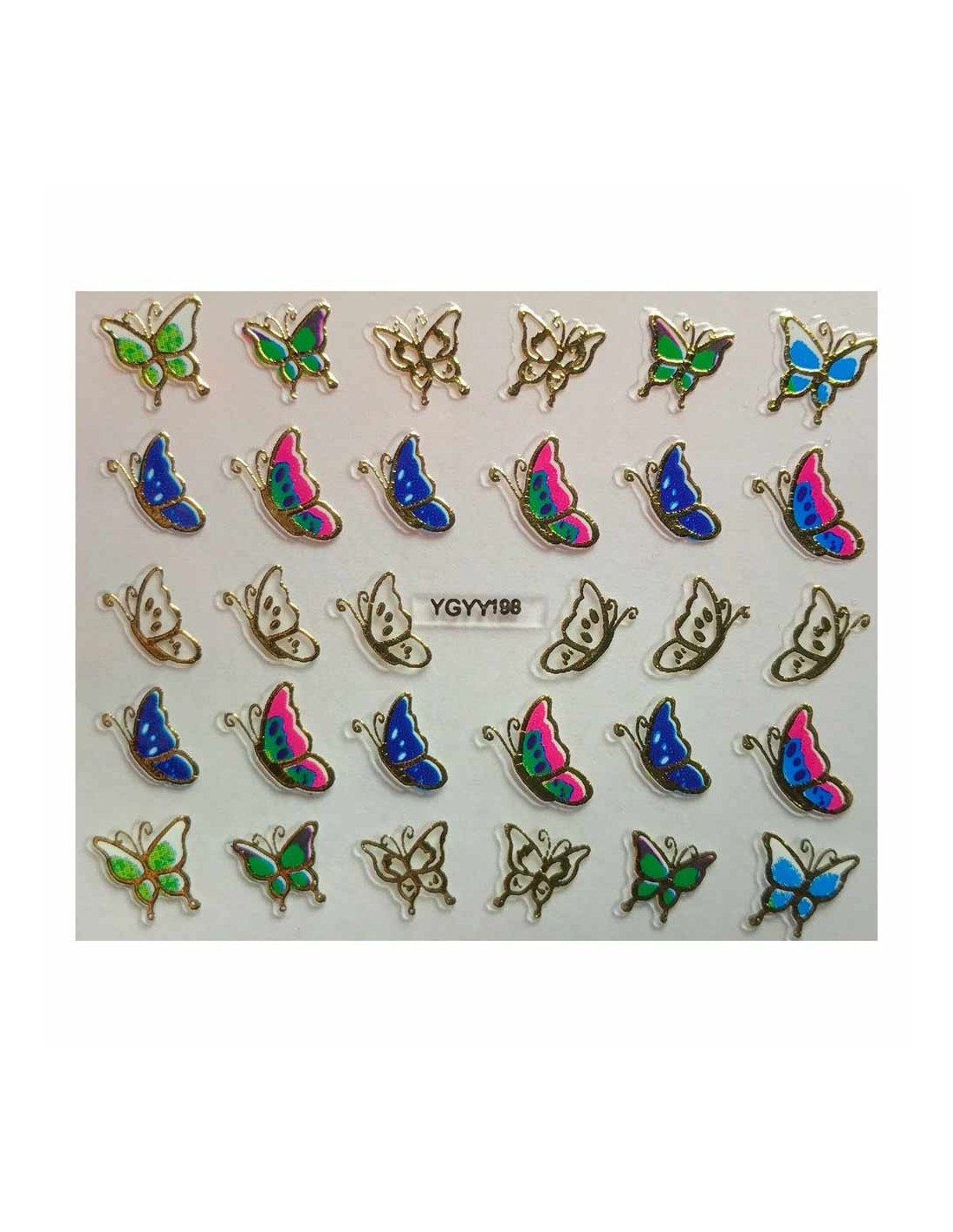 YGYY198 | Αυτοκόλλητα νυχιών, πεταλούδες σε διάφορα χρώματα και χρυσό | Nail stickers