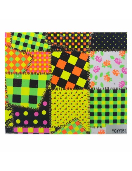 YGYY052 | Αυτοκόλλητα νυχιών, διακοσμητικά σχέδια σε έντονα φλούο χρώματα και χρυσό | Nail stickers
