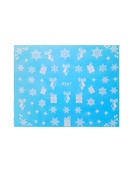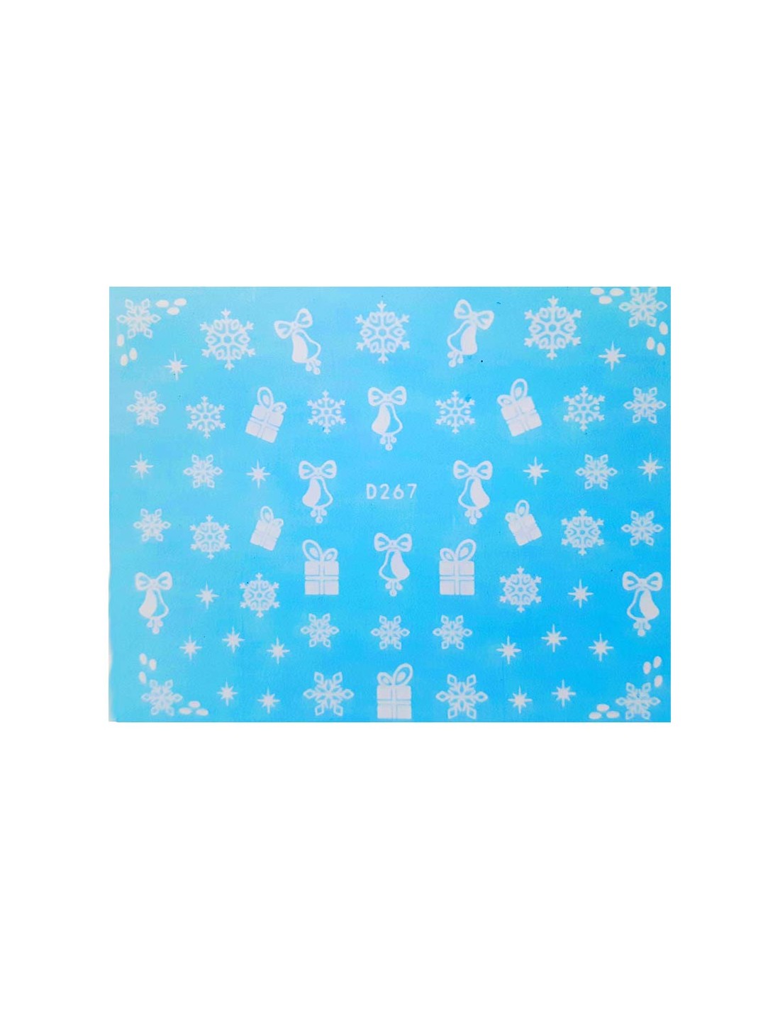 D267 | Τατουάζ νερού, χιονονιφάδες, καμπάνες και δώρα σε λευκό | Water transfer