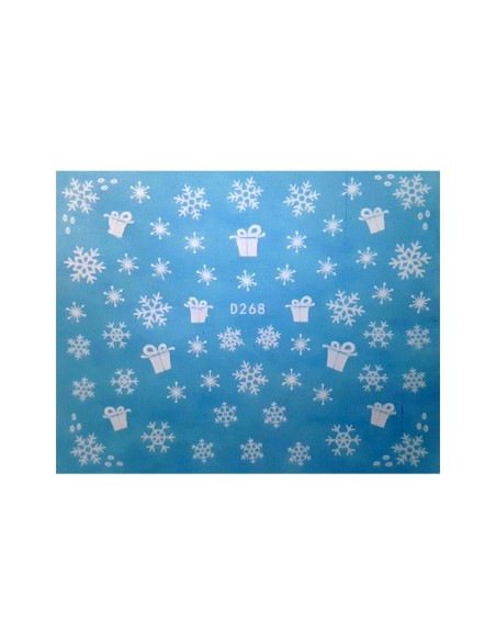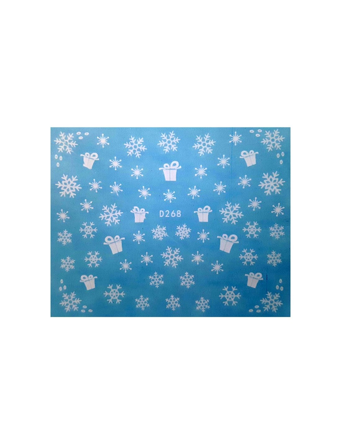 D268 | Τατουάζ νερού, χιονονιφάδες και δώρα σε λευκό | Water transfer