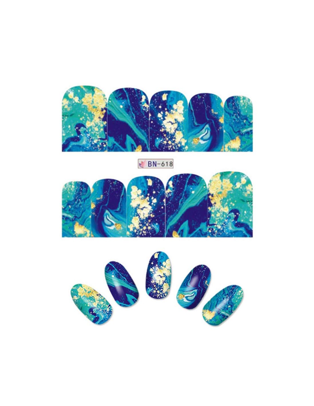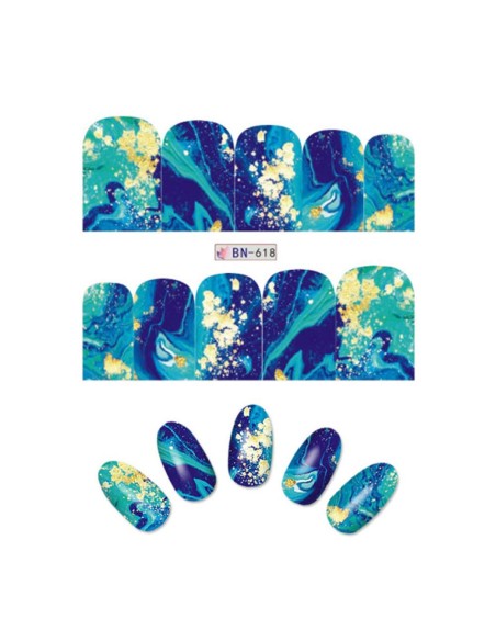 BN-618 | Τατουάζ νερού, πέτρωμα μπλε - πράσινο - χρυσό | Water transfer