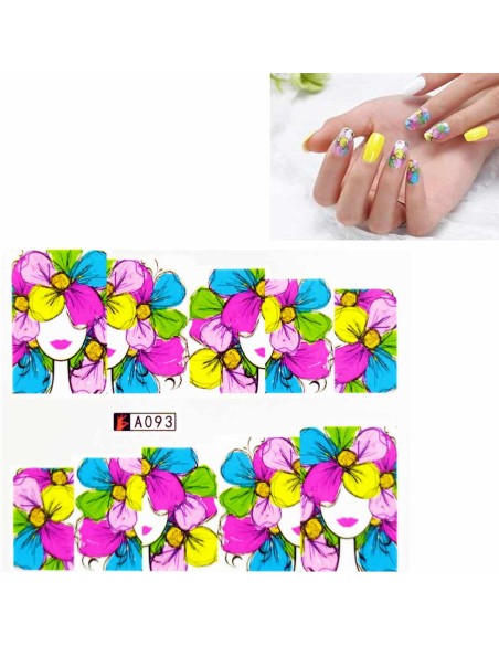 A093 | Τατουάζ νερού, πρόσωπο και πολύχρωμα λουλούδια | Water transfer