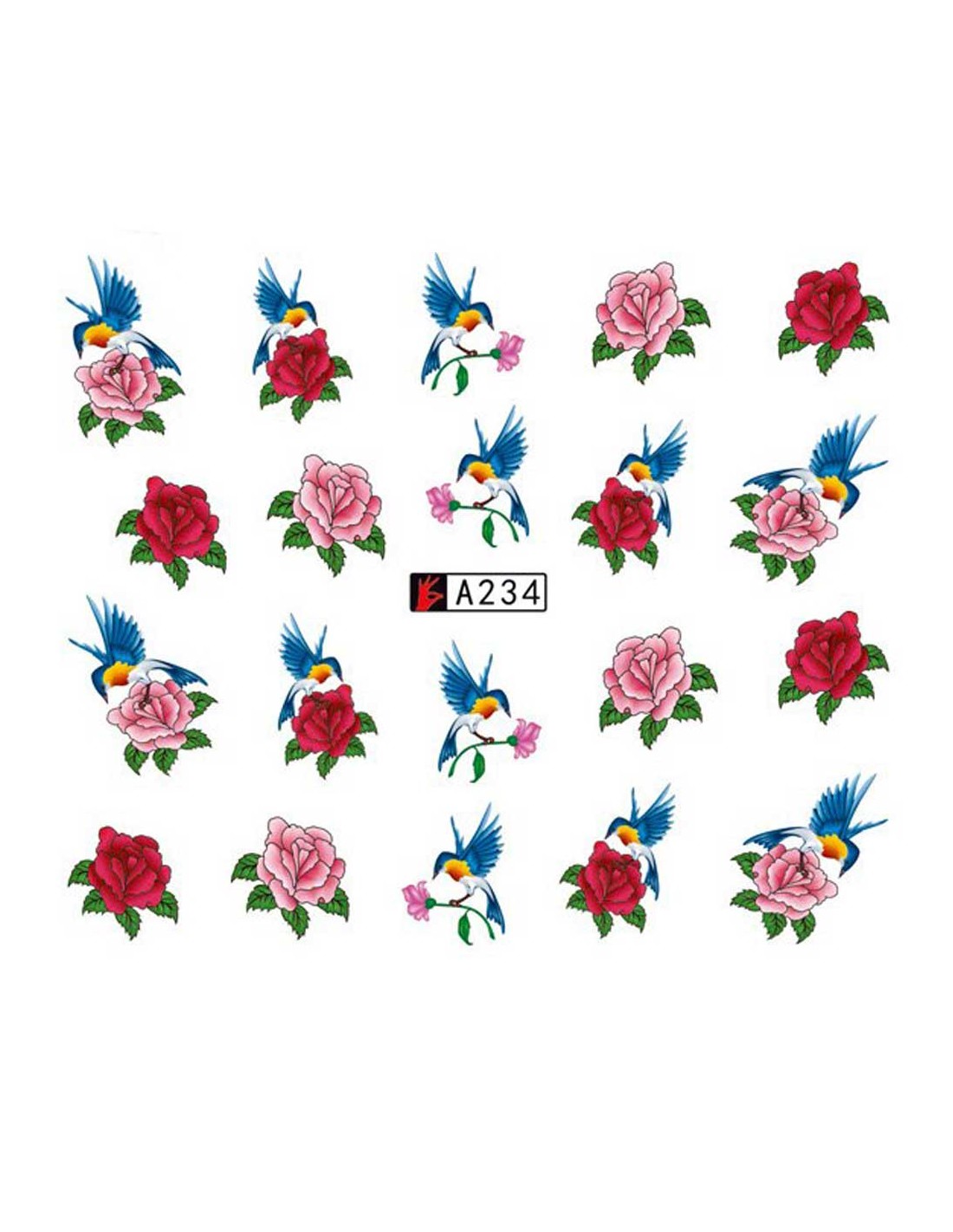 A234 | Τατουάζ νερού, λουλούδια και πουλιά | Water transfer
