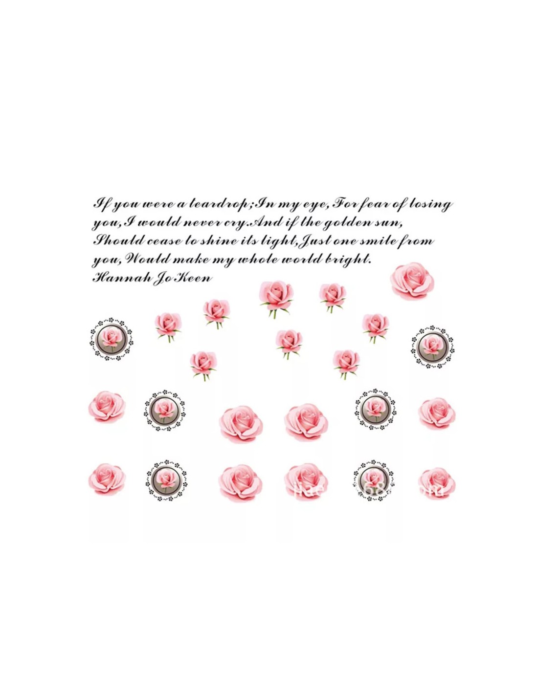 A290 | Τατουάζ νερού, τριαντάφυλλα ροζ και κείμενο | Water transfer