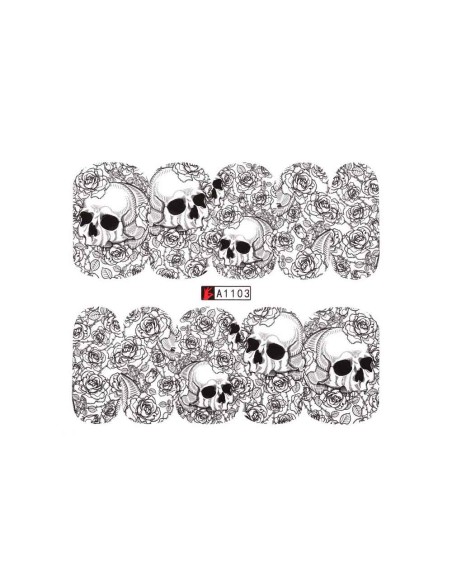A1103 | Τατουάζ νερού, νεκροκεφαλές ασπρόμαυρες και τριαντάφυλλα | Water transfer