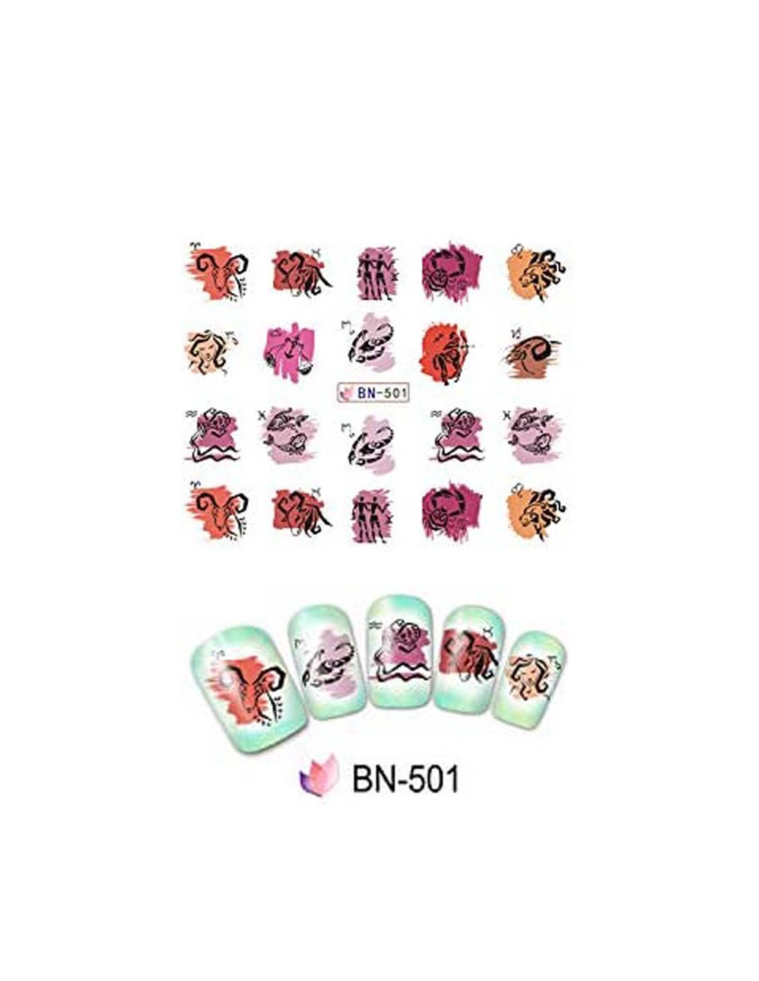 Κωδικός Water Transfer: BN-501. Με τα τατουάζ νερού (water transfer tatoo) μπορείτε να διακοσμήσετε εύκολα και γρήγορα το μανικιούρ σας ακόμη και αν δεν είστε επαγγελματίας.